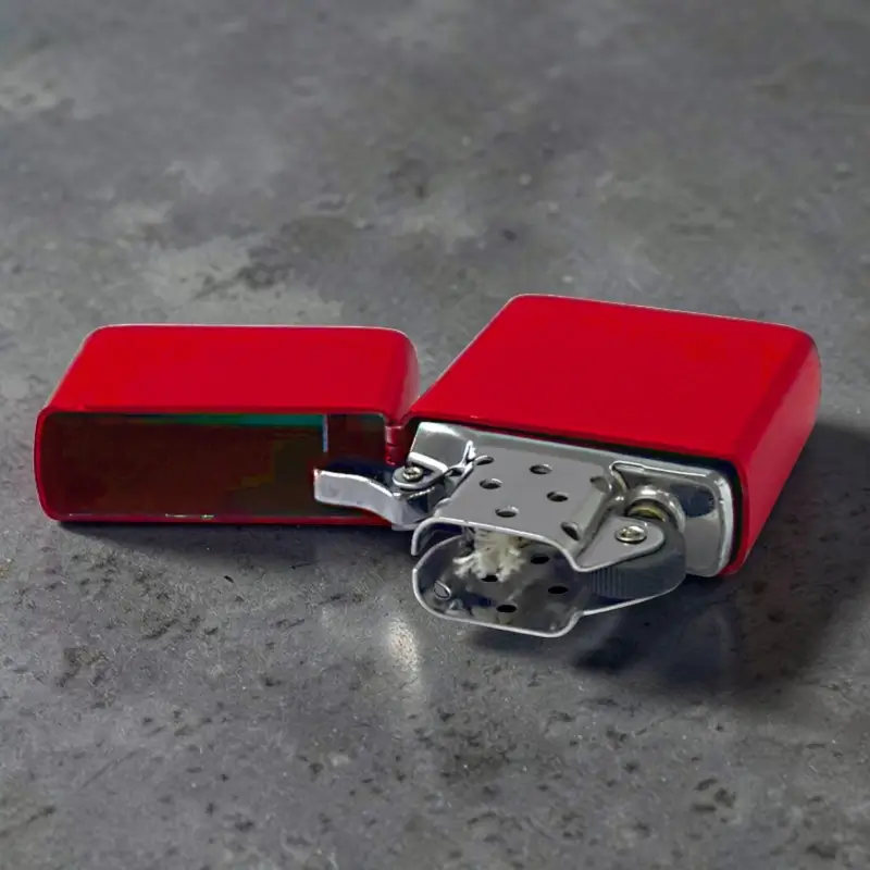 Ronson Red Matt benzinski upaljač sa fitiljem i crvenom mat završnicom. Moderan izgled, čvrsto metalno kućište i pouzdan plamen za svakodnevnu upotrebu ili poklon.