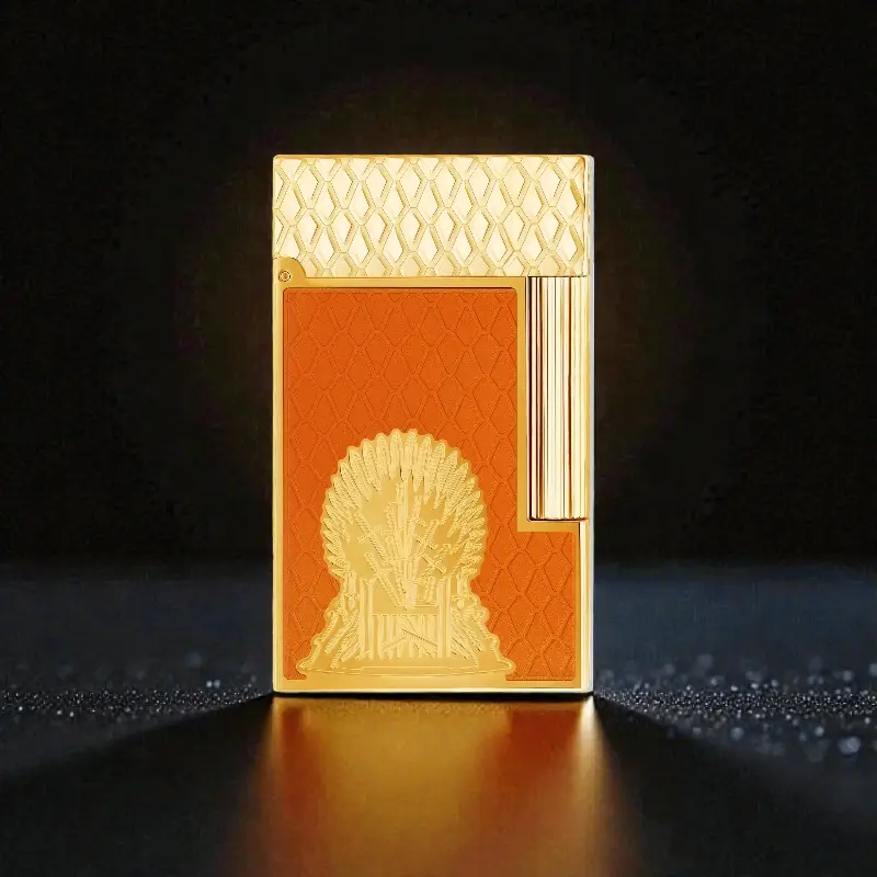 Ekskluzivni S.T. Dupont Ligne 2 upaljač iz Game of Thrones kolekcije, sa narandžastim lakom, zlatnim detaljima i legendarnim “Cling” zvukom pri otvaranju. Kolekcionarski komad sa duplim žutim plamenom.