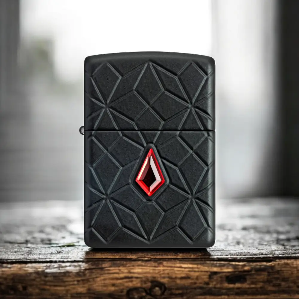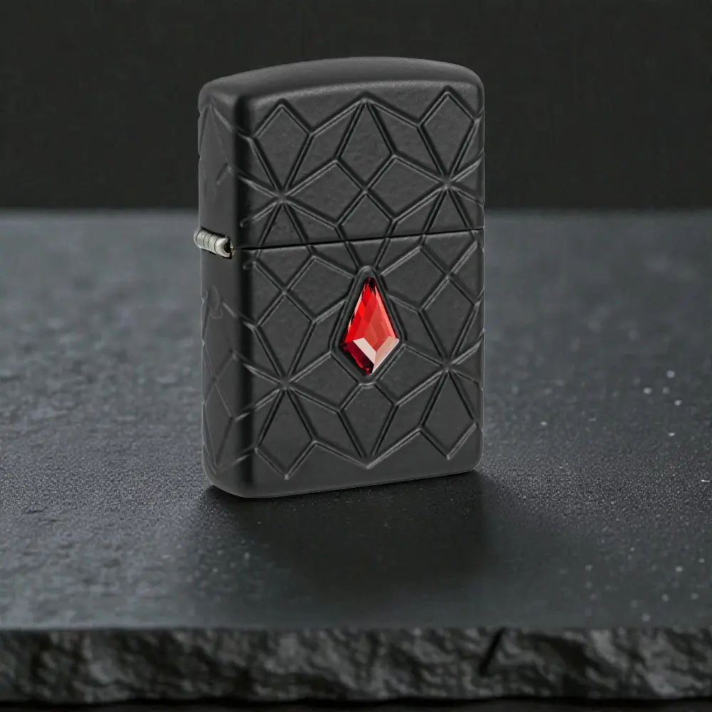 Zippo Armor Red Crystal Design spaja geometrijsku MultiCut obradu sa centralno postavljenim crvenim kristalom. Mat crno kućište i precizna 360° gravura daju ovom modelu moderan, luksuzan karakter.