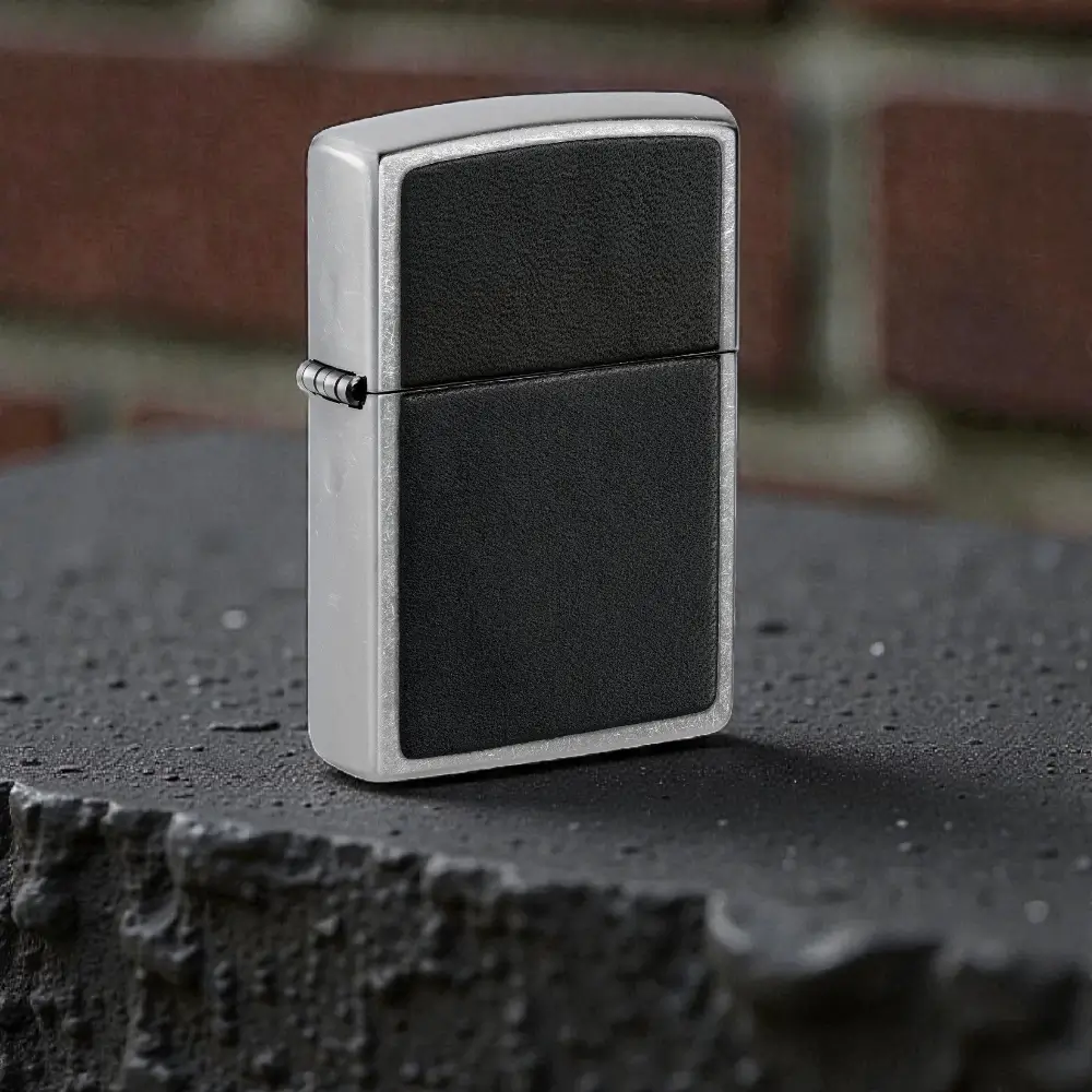 Zippo Black Leather Emblem Street Chrome kombinuje klasično metalno kućište sa crnim kožnim umetkom, stvarajući elegantan i diskretan dizajn. Ovaj model namenjen je korisnicima koji preferiraju jednostavan, poslovan izgled bez izraženih grafičkih motiva.