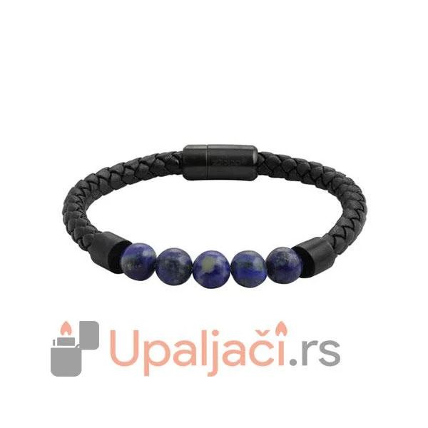 Tanka zippo kožna narukvica sa elementima od nerđajućeg čelika i poludragog kamena. Centar narukvice je ukrašen kuglicama od poludragog kamenja. Unutrašnjost sjajne kopče ukrašena je originalnim Zippo logotipom.